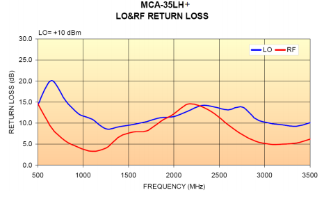 Specifications of two Mini-Circuits triple balanced LTCC mixers are listed in Table 1: MCA-35LH+ and MCA-50LH+.