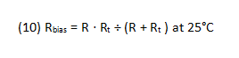 Let kb be the fractional increase in Rbias needed at the maximum operating temperature relative to 25°C: (hot resistance − 25°C resistance) ÷ 25°C resistance.